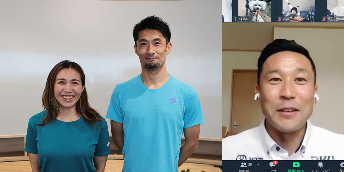次に行われたのは、「アスリートが実際に行っているセルフケア」。田山寛豪氏や深浦祐哉氏から普段行っているセルフケアに関して説明があったあとは、当日オンラインで参加し、チーム「puente」に普段から協力してくれている古山大選手、 西麻依子選手、蔵本葵選手からもセルフケアやストレッチ方法に関して説明する場面もあった。