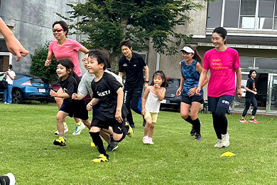 最後は大人の方は15分間走。子供は5分間を2回のシャトルラン走に分かれて、各々自分にあった目標でチャレンジしました!