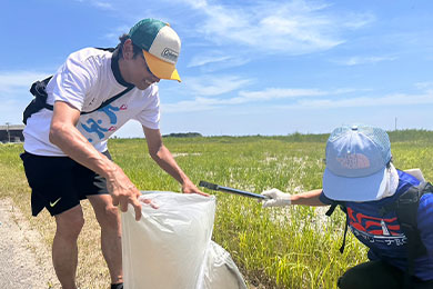 7月27日(土)に地元銚子市にて『スポーツで海をきれいに!アスリートと一緒に環境について考えよう!』と題して、環境セミナー、ビーチクリーン、マリンアクティビティとプロギングを行うイベントを開催し、総勢46名の方にご参加いただきました。